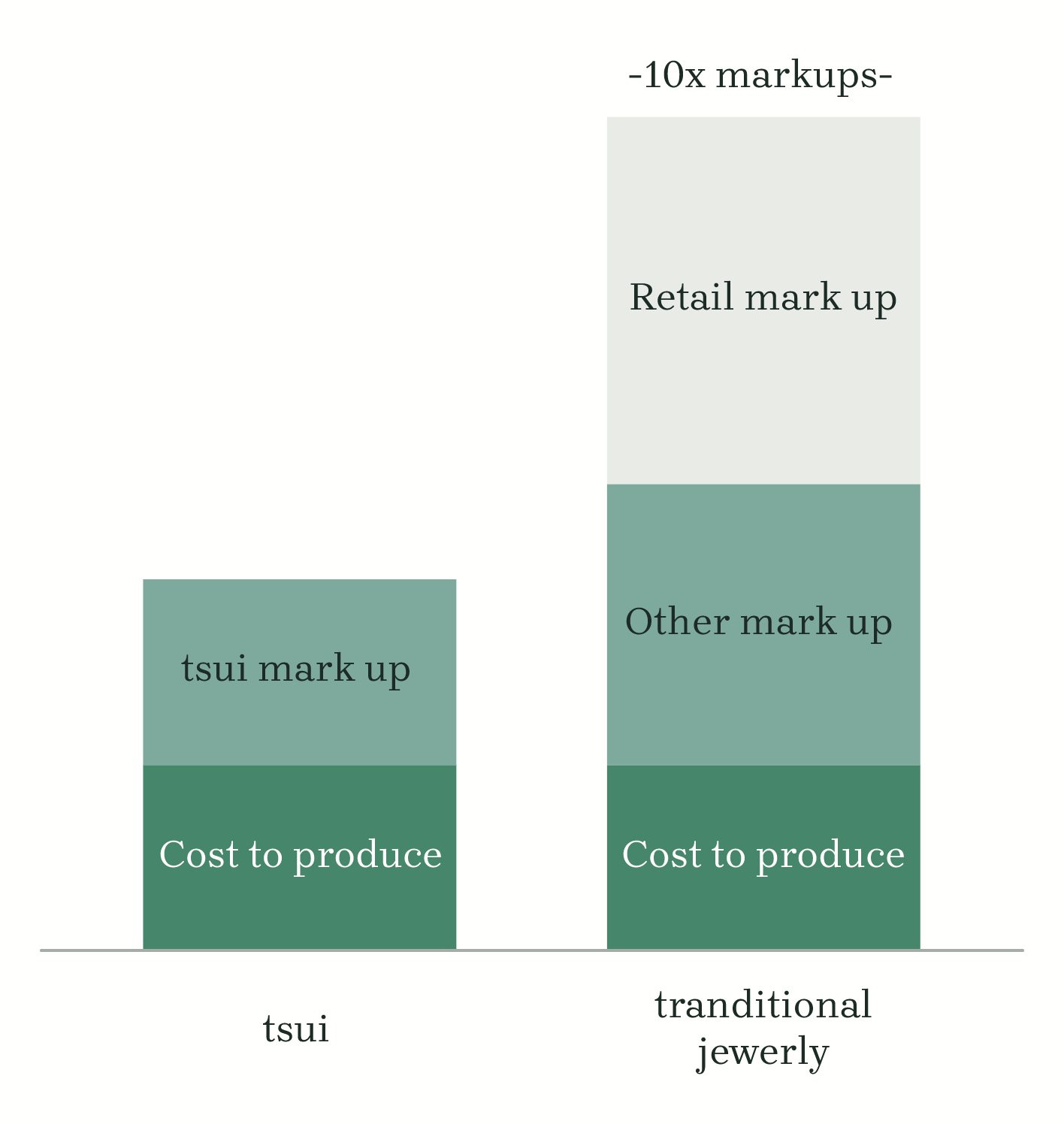 tsuiのアクセサリーは、適正価格を目指しています。販売方法として D2C(Direct to Consumerの略)モデルを採用しており、自ら企画、生産した商品を小売店や店舗を挟むことなく、お客様に直接お届けします。最高級の素材と品質の高い生産体制を維持しながら、中間コストを削減し、従来のような高値の取引を行わないように努力しています。
