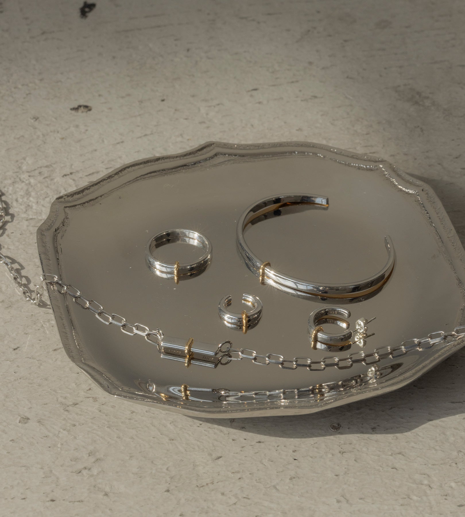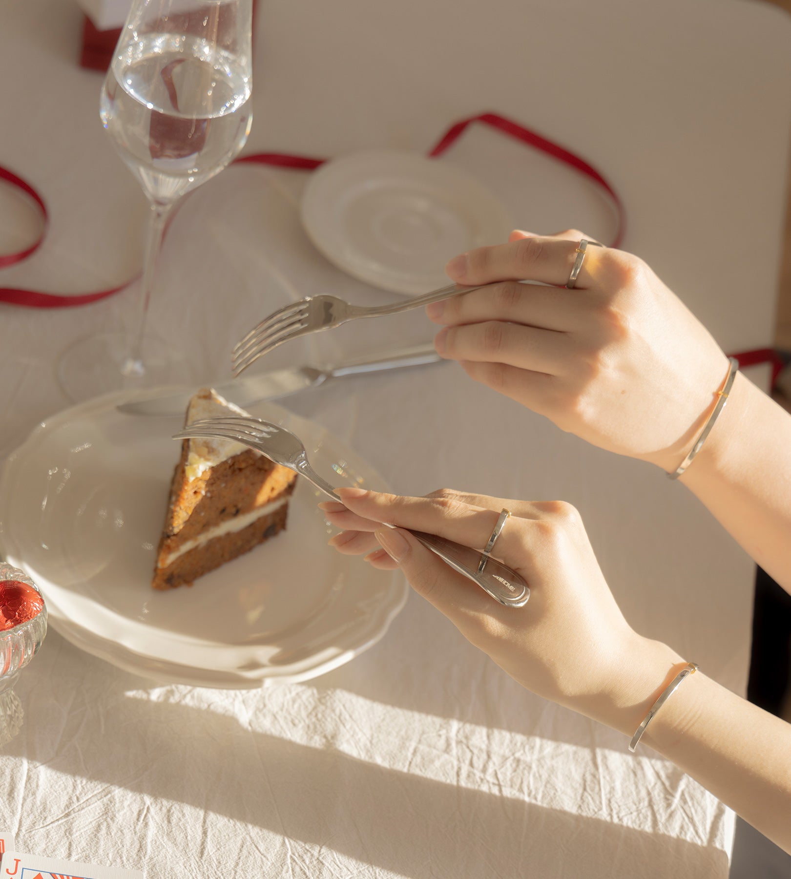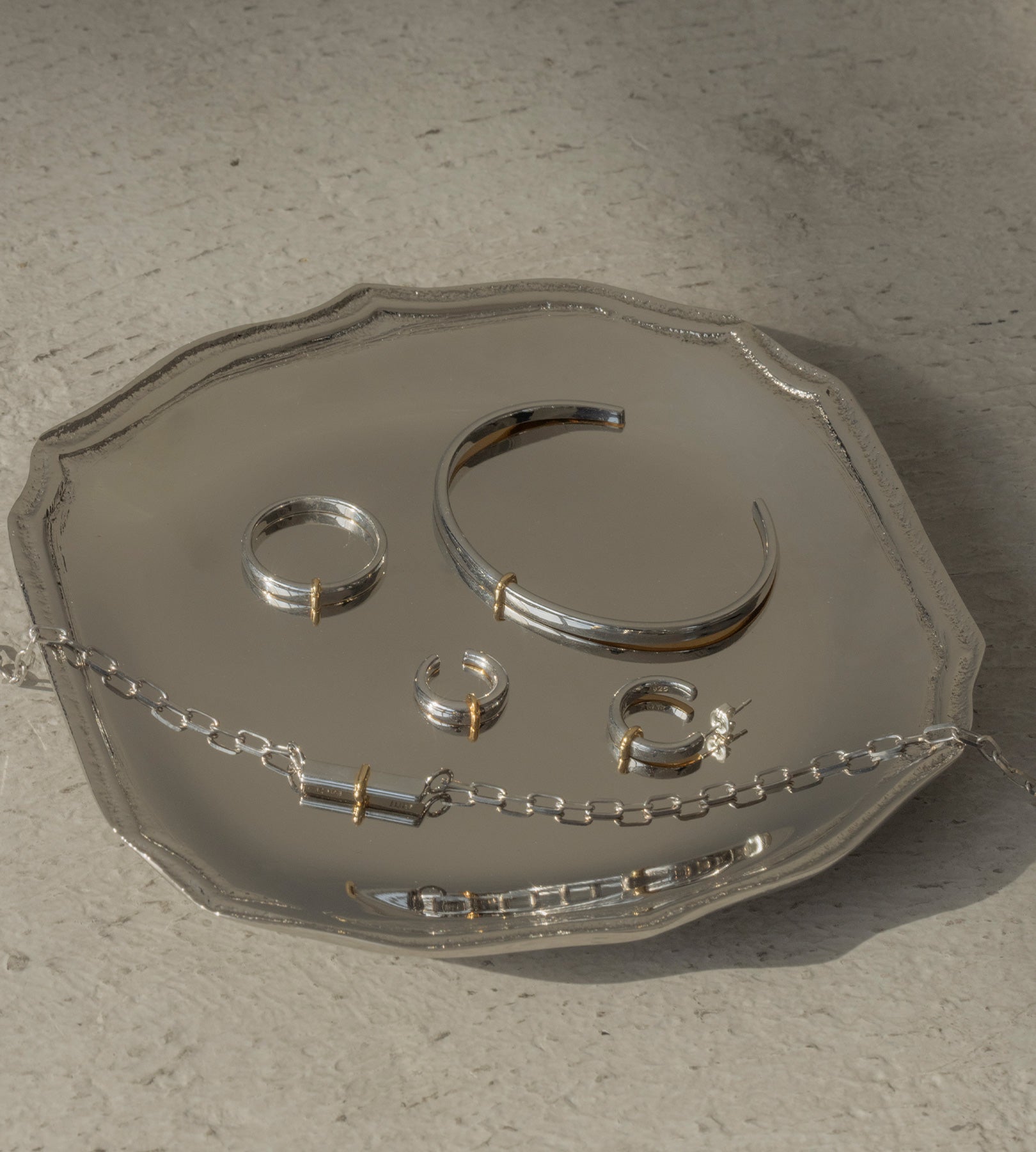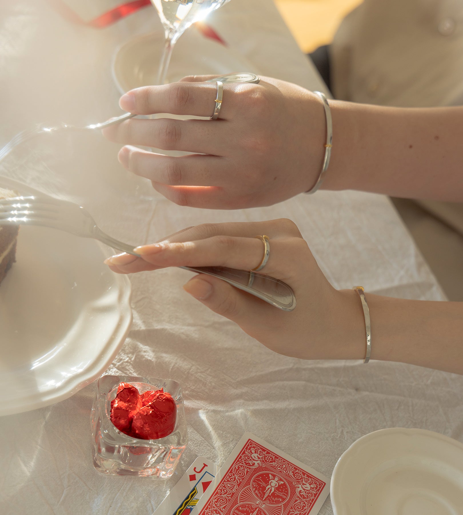 ・水分が付着したままになりますと、変色の恐れがございます。ご入浴やプール、水仕事など長時間水に触れる環境下ではご着用をお控えください。